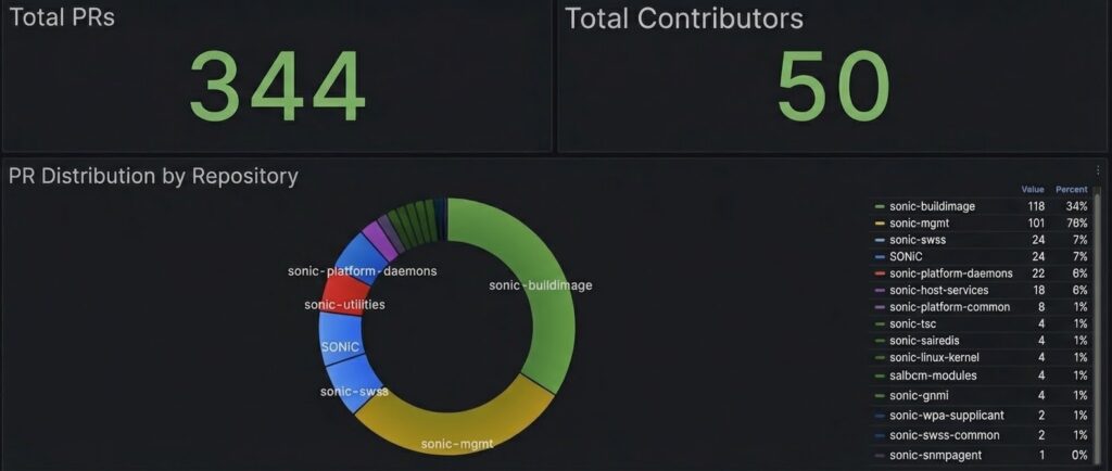 This dashboard provides a glimpse into Nexthop AI’s annual pull request (PR) contributions to the sonic-net community repo, highlighting our ongoing commitment to advancing the open-source SONiC community. Our primary focus areas include: